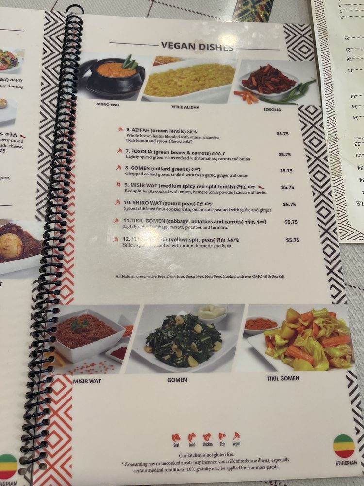 Spiced chickpeas flour cooked with, onion and seasoned with garlic and ginger. Served with injera. Vegan.