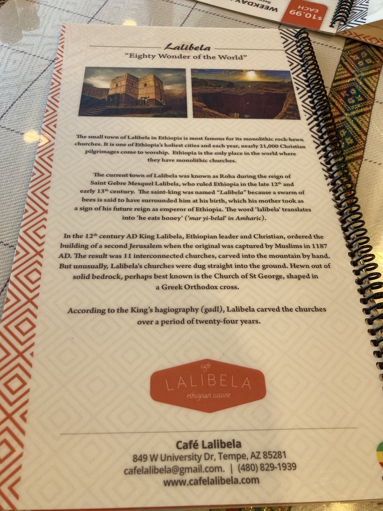 Café Lalibela is a renowned Ethiopian restaurant in Tempe, offering a diverse menu catering to gluten-free, vegetarian, and pescatarian diets. Known for its flavorful dishes like Alicha Sega Wat, Asa Wat, and Doro Wat, the restaurant prides itself on authenticity and quality. Customers rave about the friendly service, vibrant ambiance, and the unique dining experience. Those seeking a memorable culinary adventure can indulge in Chef's Favorite Combination Platter or Manager's Choice Platter. With options for vegans and meat lovers alike, Café Lalibela is a must-visit destination for those craving exotic flavors and a welcoming atmosphere. Don't miss out on their special events like the monthly vegan buffet and holiday-themed meals. Experience the taste of Ethiopia at Café Lalibela and discover a new world of culinary delights.